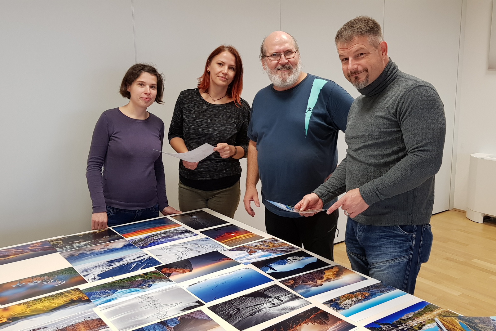 Ocenjevalna komisija fotonatečaja #LjubimGore, Maša Zavrtanik, Hedvika Petkovšek, Emil Pevec in Blaž Košak - Blayo, je tudi letos imela zahtevno delo (foto Manca Čujež)