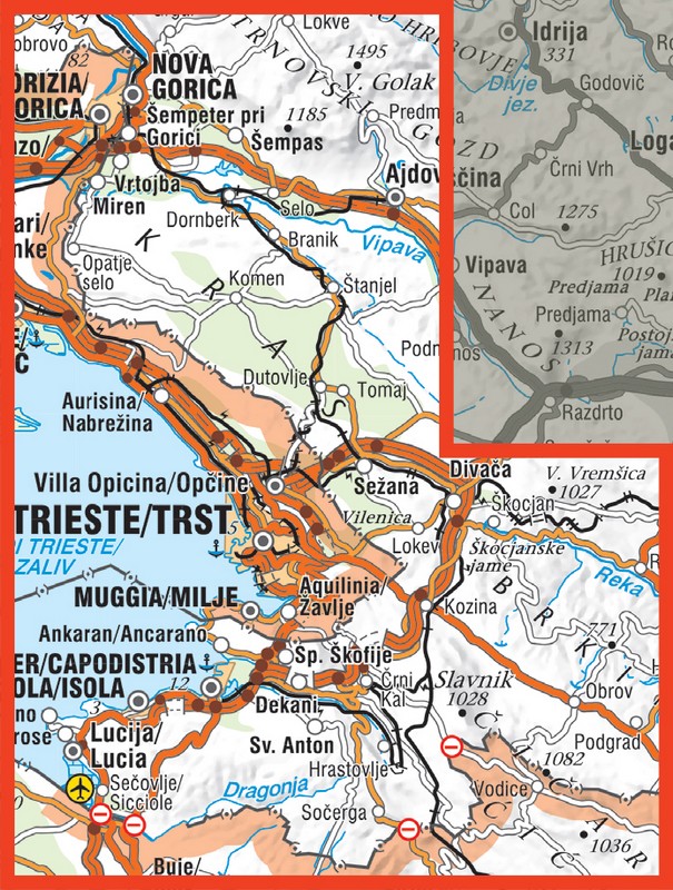 - mesta Trst, Gorica in Nova Gorica s številnimi zalednimi planinskimi potmi.