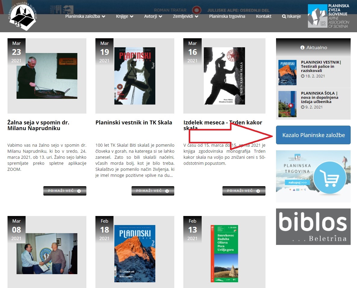 Iskalnik seveda ne bi imel prave vrednosti brez spletne strani Planinske založbe, ki jo najdemo na naslovu http://planinskazalozba.pzs.si/, kjer so zbrane vse informacije o knjigah, zemljevidih in avtorjih, tam sta tudi povezava do trgovine in poseben gumb za vstop v Iskalnik Planinske založbe. V arhivu lahko prosto dostopimo tudi do nekaj najstarejših edicij, ki so izšle še pod okriljem Slovenskega planinskega društva pred drugo svetovno vojno, med drugim npr. do Plezalne tehnike Mire Marko Debelak iz leta 1933.