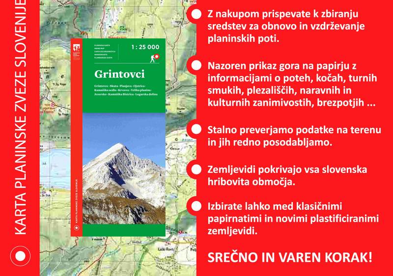 Zemljevidi merila 1 : 25 000 so odličen pripomoček za vsakogar, ki se podaja v slovenski gorski svet. Ljubiteljem brezpotij bo všeč predvsem natančen, pregleden in lično prikazan teren, ostali pa bodo lahko brezskrbno uživali na planinskih poteh, saj njihov vris temelji na najnovejših, na terenu preverjenih podatkih, snovalci pa niso pozabili niti na dodatne koristne vsebine.