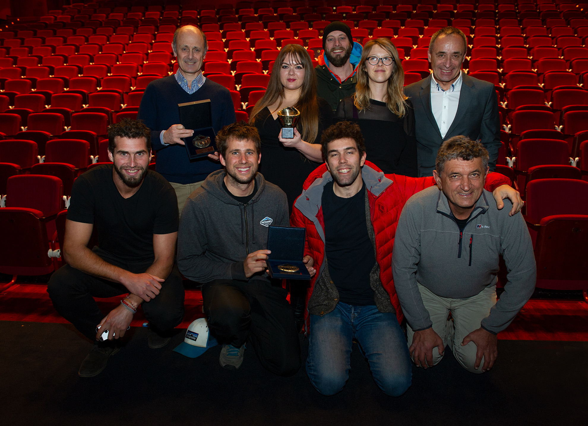 Nagrajeni ustvarjalci filmov Manaslu in Nepoškodovane z direktorjem festivala in festivalsko žirijo (foto Igor Kuster/FGF)