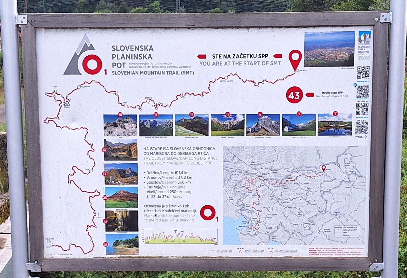 Informacijska tabla Slovenske planinske poti na začetku poti v Mariboru (foto Andrej Stritar)