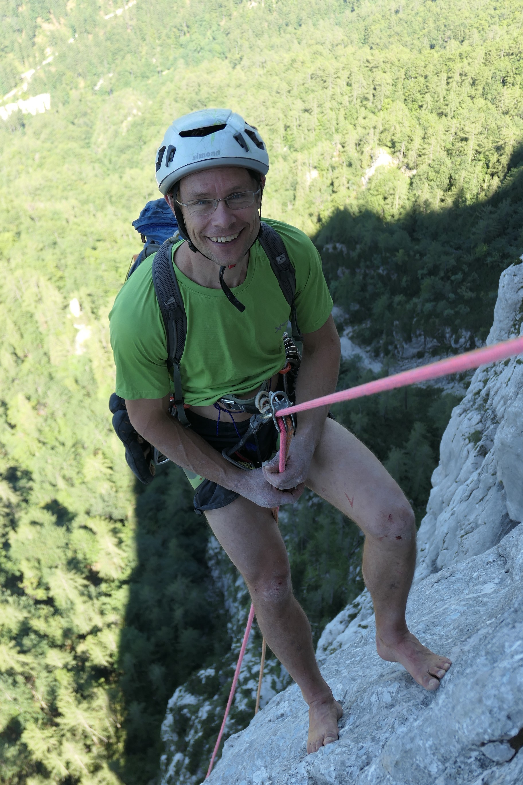 Andrej Grmovšek (1973) pleza že dobra tri desetletja. Alpinistične odprave, pogosto v dokaj neraziskane kraje, so ga popeljale po vsem svetu, mnogo izredno zahtevnih skalnih in kombiniranih vzponov pa je nanizal tudi v Alpah. Poklicni naravovarstvenik v zadnjem desetletju največ prostega časa porabi za raziskovanje domačih gora. Je soavtor plezalnega vodnika Moderne večraztežajne smeri (Planinska založba, 2020).